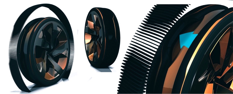 Natürlich kann Aquaplaning dadurch nicht zu 100 Prozent vermieden werden, aber es kann beim Beginn von Aquaplaning und damit bei einer viel höheren Geschwindigkeit garantieren, dass der maximale Grip auch bei dieser gefährlichen Situation auf der Straße gegeben ist. Zudem ermöglichen die eingerichteten Öffnungen einen deutlich besseren Grip auf Strecken mit Schnee und Glätte. Im Inneren des Autos werden die Designelemente des Reifens und des Reifenprofils widergespiegelt. Das Armaturenbrett wird aus den Speichen des Reifens erstellt, um einen Kontrast zu den feinen Sitzen zu geben. Diese werden aus einem flexiblen Gewebe entworfen, welches seiner biologischen Form entspricht.